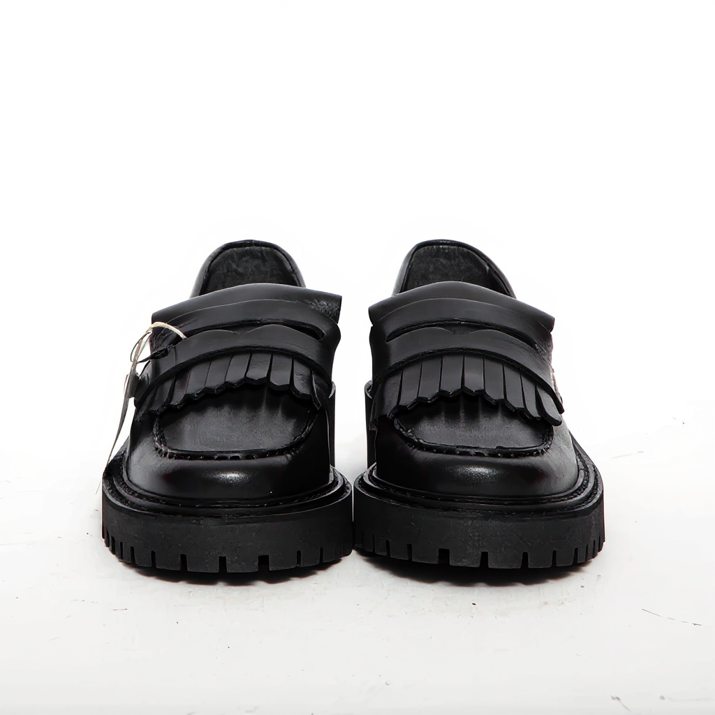 Detailing: Loafers, Leather, Fringed, Round toe, Slip on, Imported.