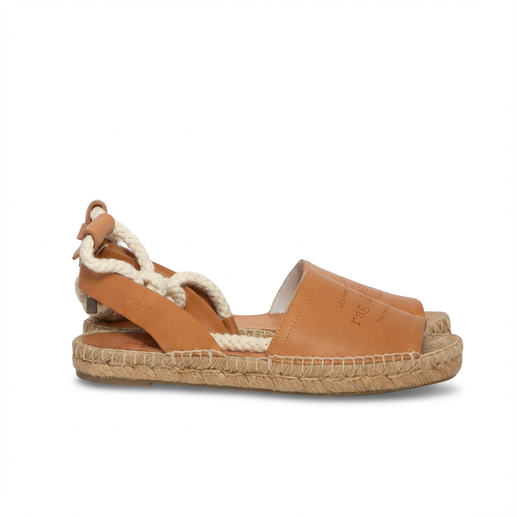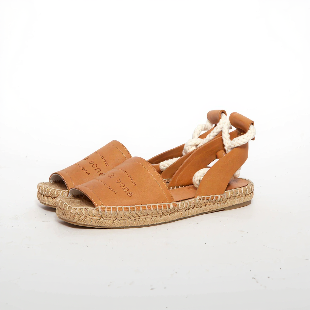 RAG & BONE | Tan Luxury Leather Ankle-Tie Espadrille Flats - EU 39.5