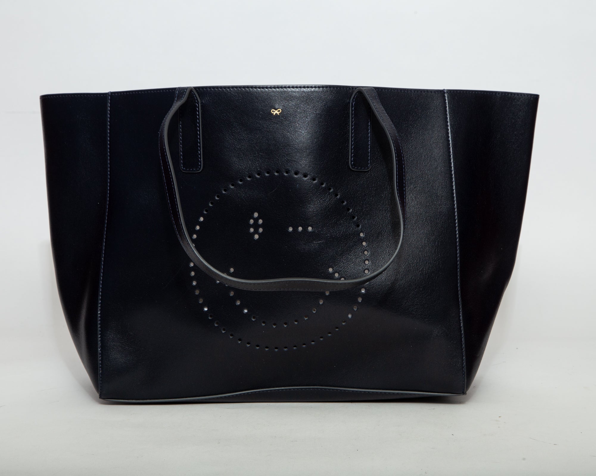 ANYA HINDMARCH Perforated Leather Tote - Dark Blue
