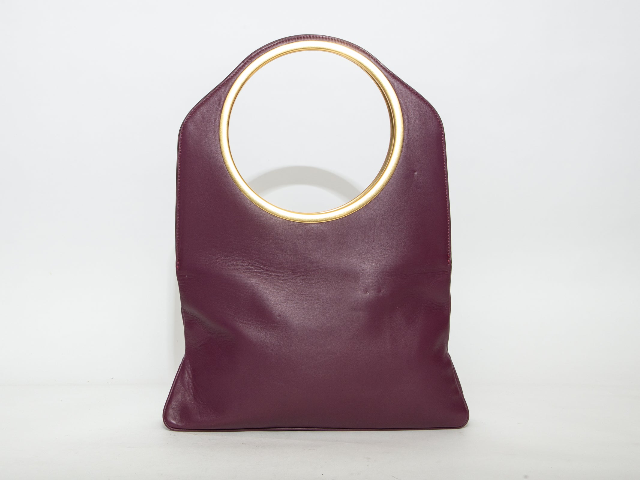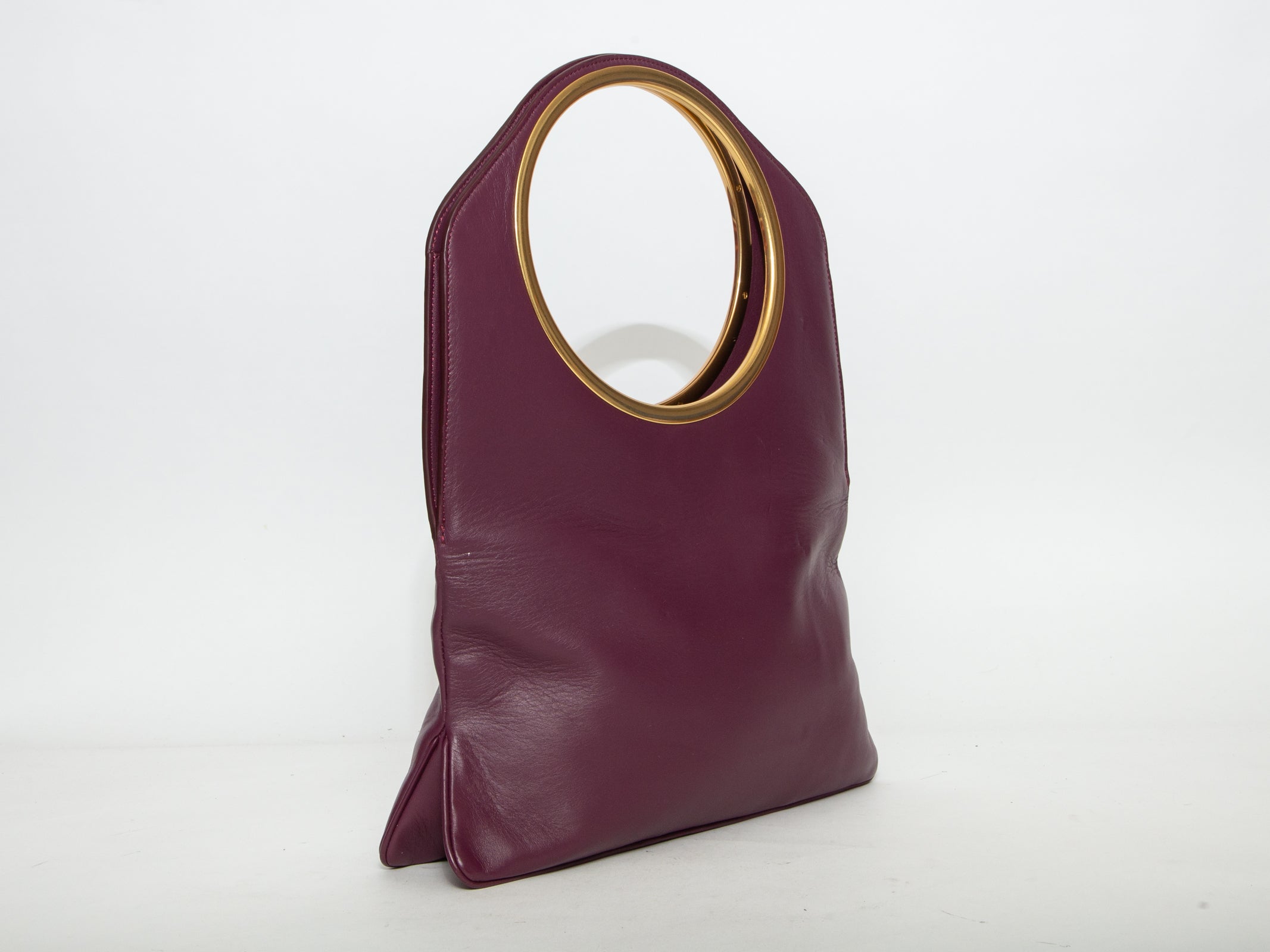 A bold and contemporary designer piece that serves as a stylish accessory first and foremost—ideal for those seeking an architectural, statement leather tote with a vintage feel.