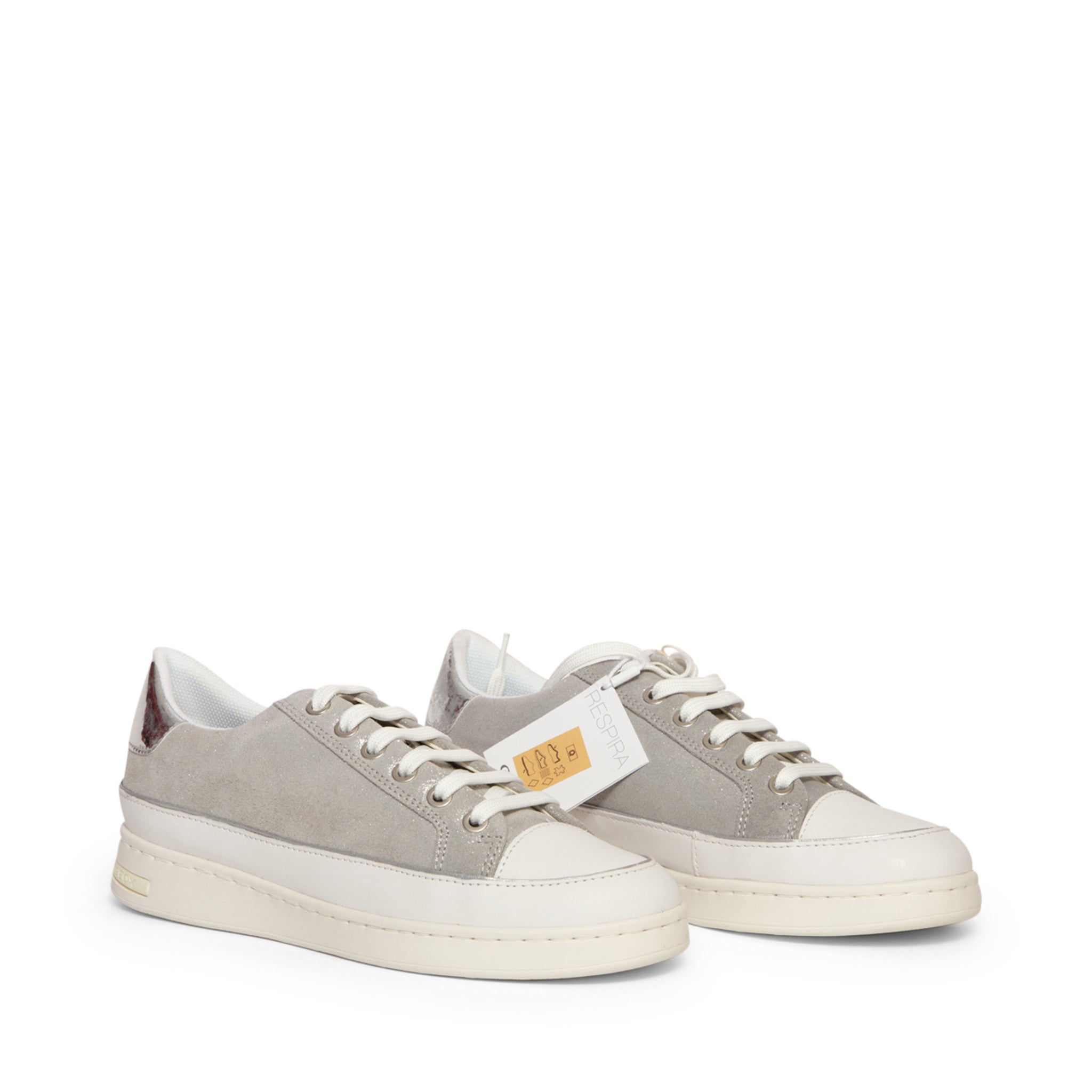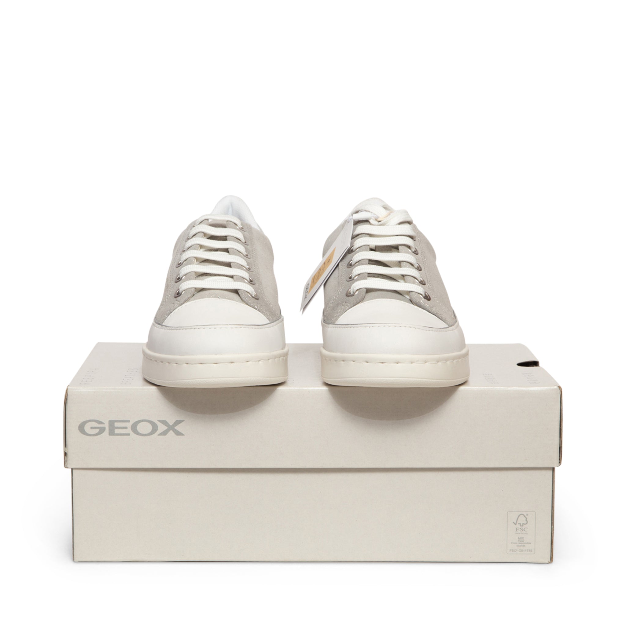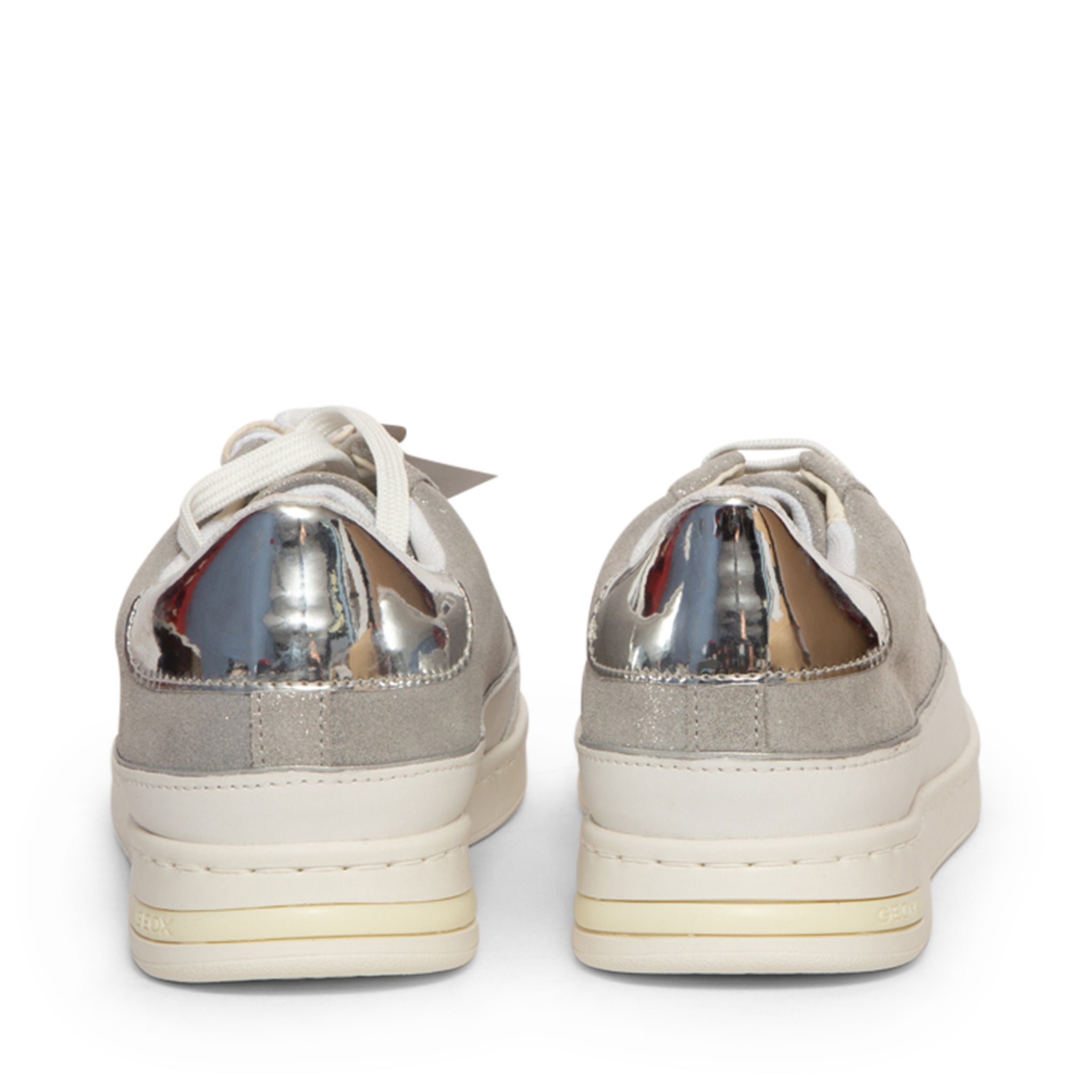 Sparkling Comfort: Breathable Flatform Trainers with Glitter Details Shine bright with these fashionable GEOX Sneakers, blending sporty style with feminine glamour. Crafted from durable Leather, these trainers feature a sparkling Glitter accent and a two-tone design in shimmering Silver. They are built on an on-trend flatform sole for comfortable lift and stability. The classic lace-up closure, comfortable round toeline, and signature brand logo detailing complete the look. Featuring a leather backing for premium feel and Geox's renowned breathable technology, these flatform sneakers ensure all-day comfort without sacrificing style.