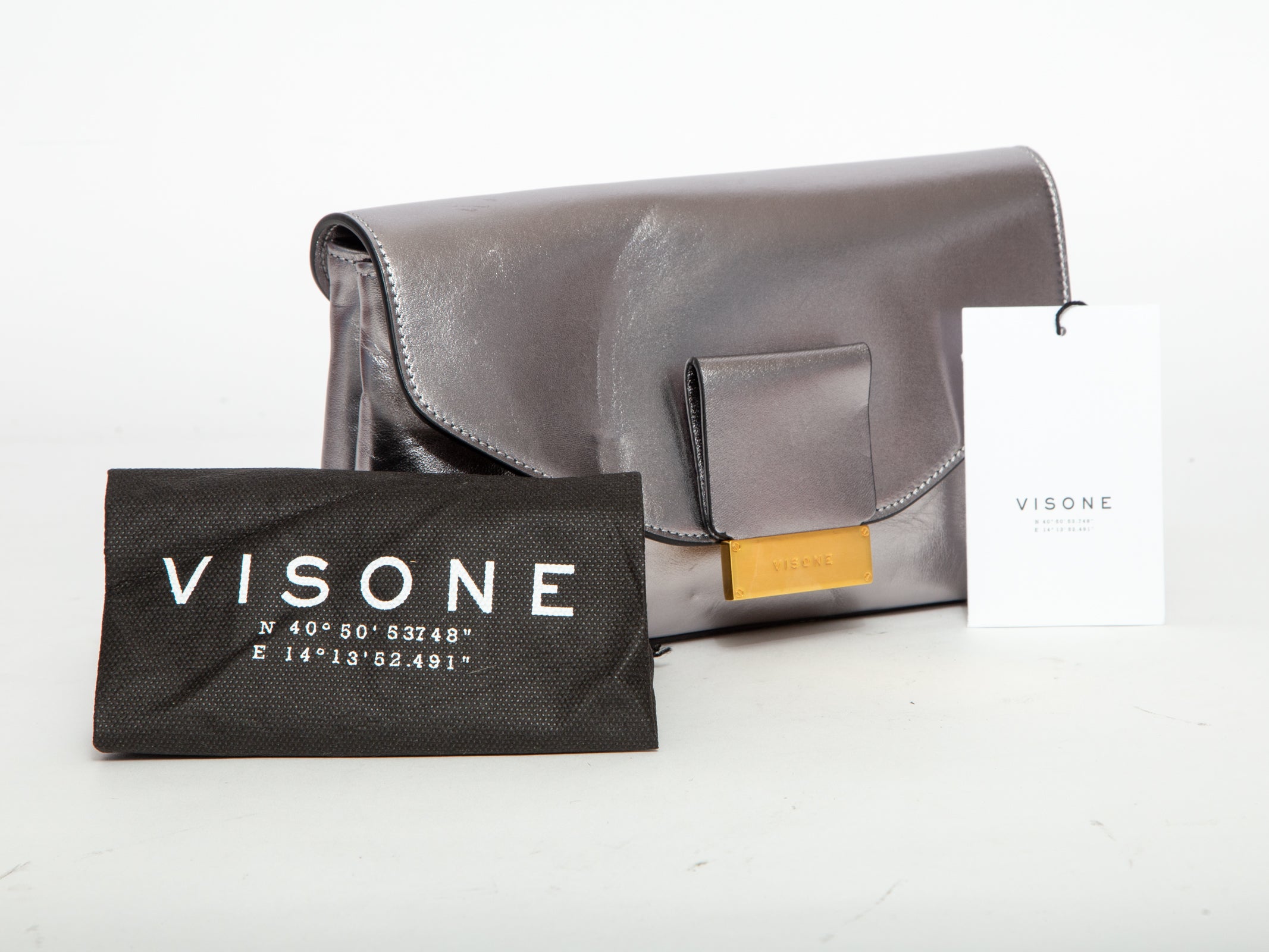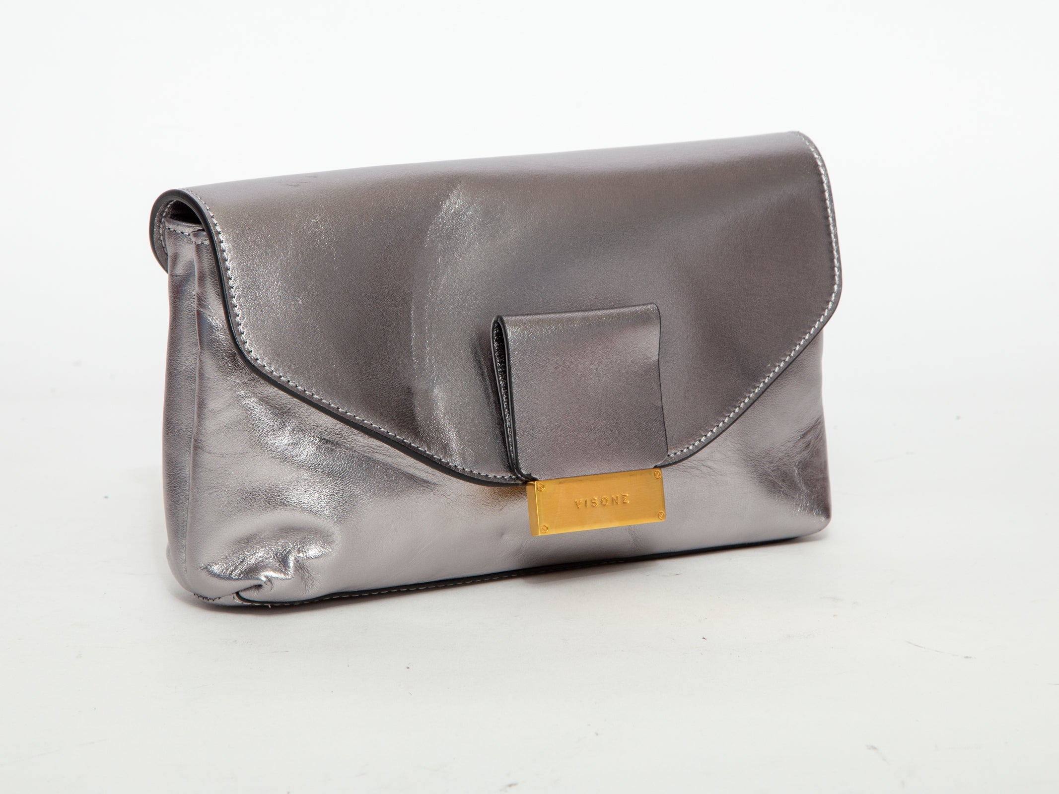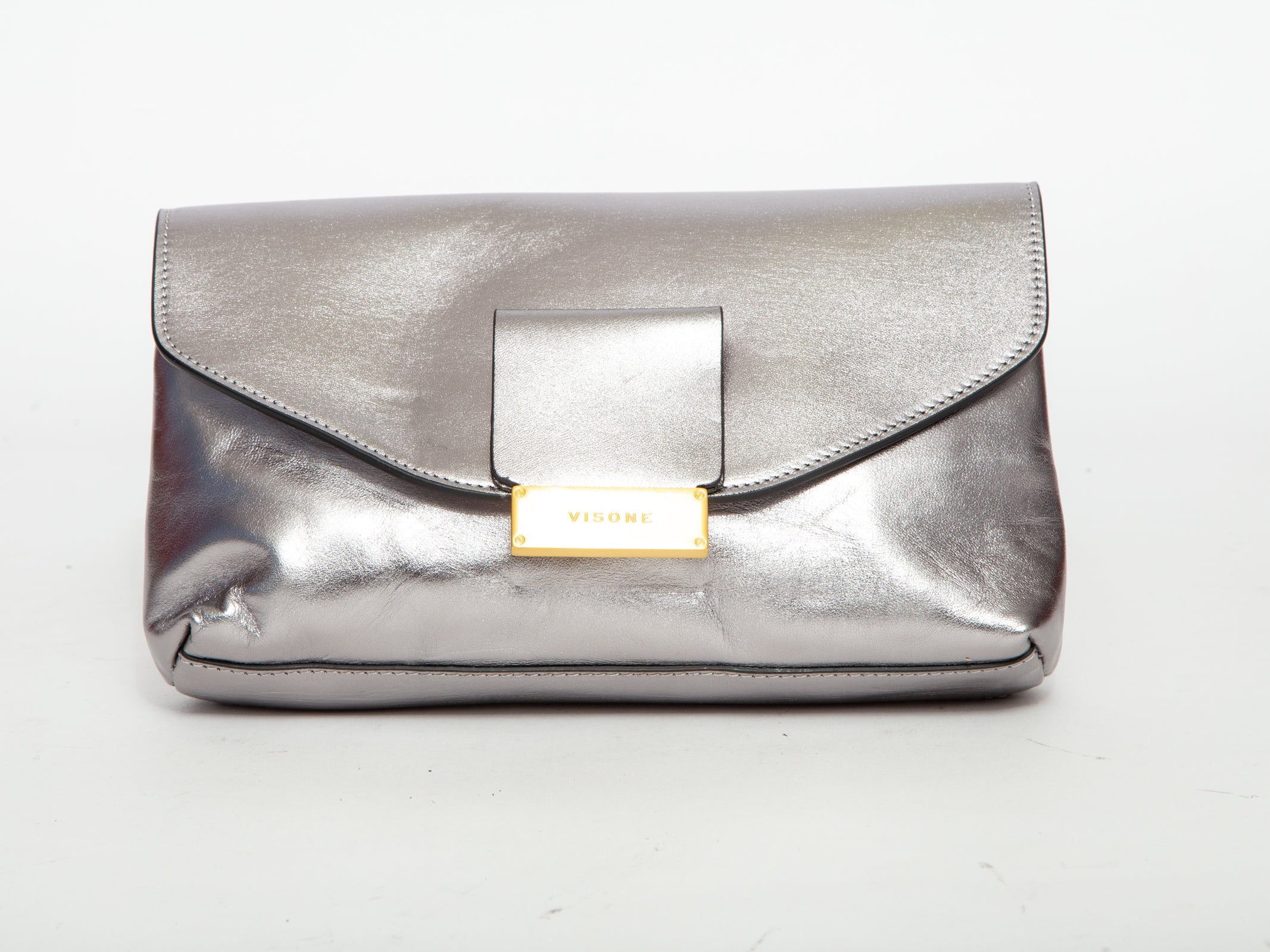 VISONE Metallic Leather Clutch / Handbag - Silver