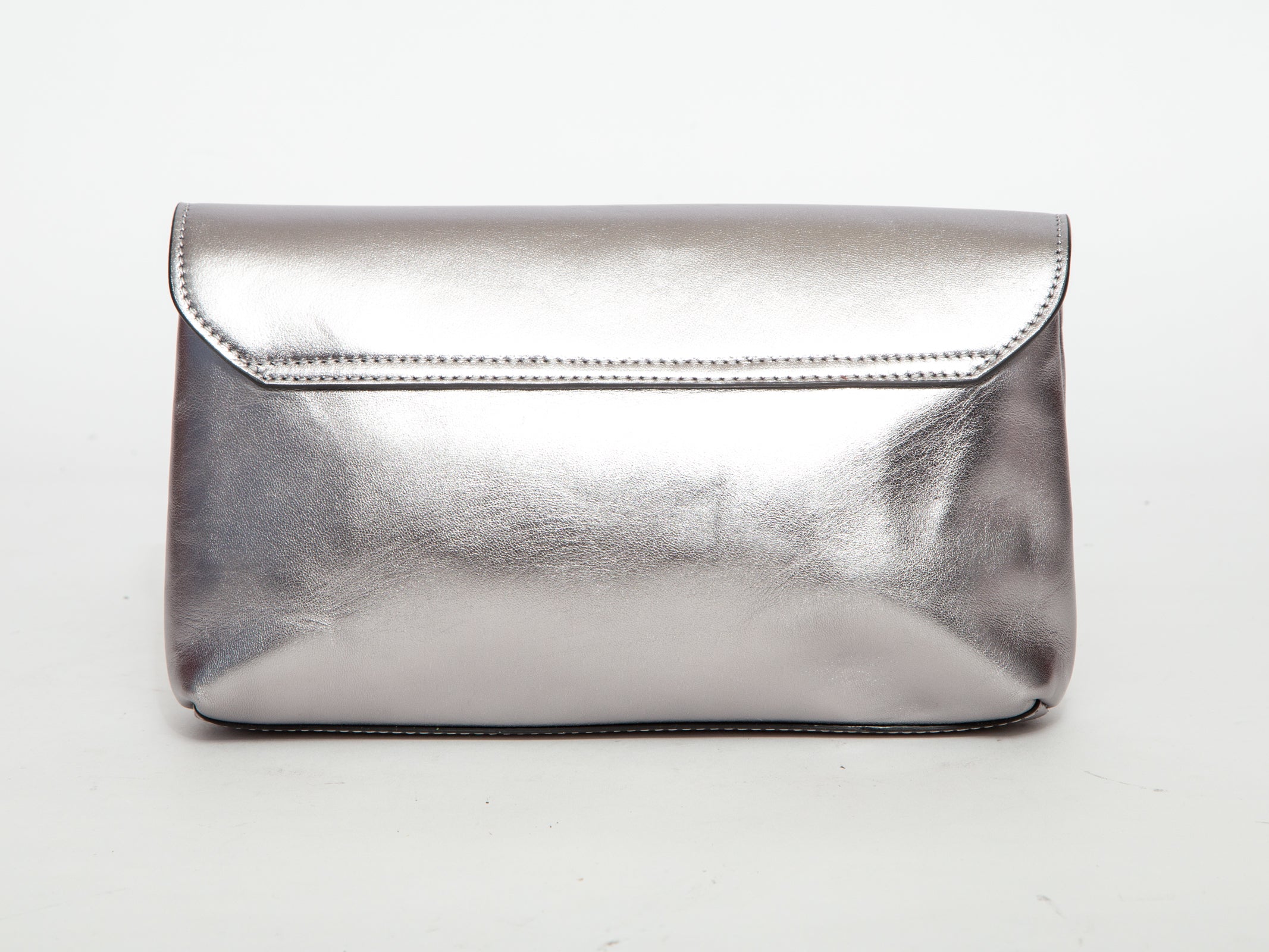 A sophisticated designer piece that delivers understated luxury and a contemporary metallic finish – ideal for those seeking a chic, high-quality clutch with effortless Italian style.
