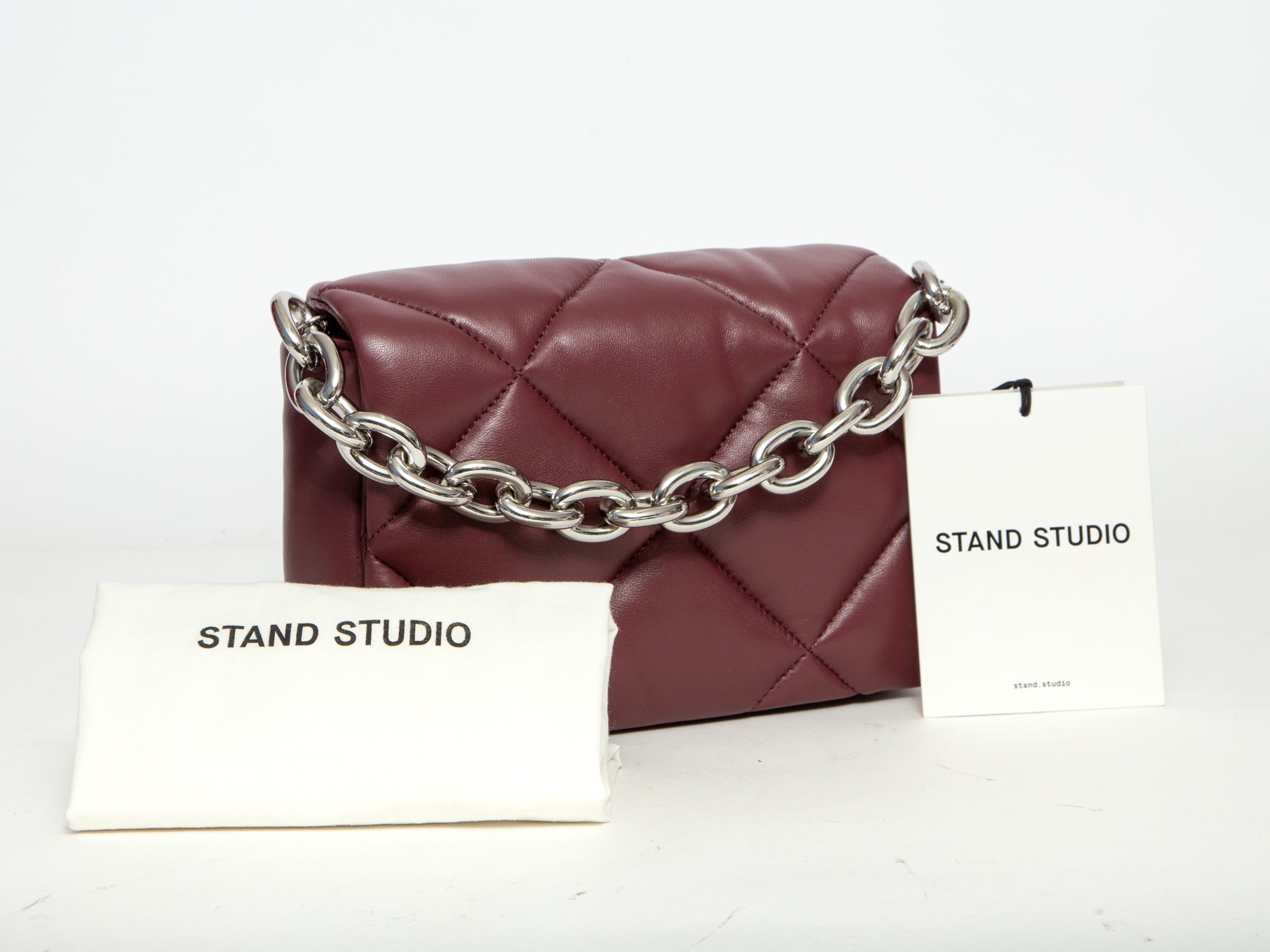 STAND STUDIO Quilted Padded Lambskin Crossbody Bag - Burgundy